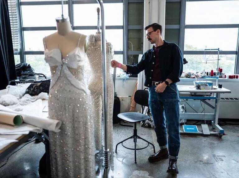 维密们这次大秀要穿的衣服也提前曝光了几身,这两套白色亮片吊带礼服看着很贵气。设计师还准备了很多华丽的配饰,又是一场奢华的维密大秀啊。