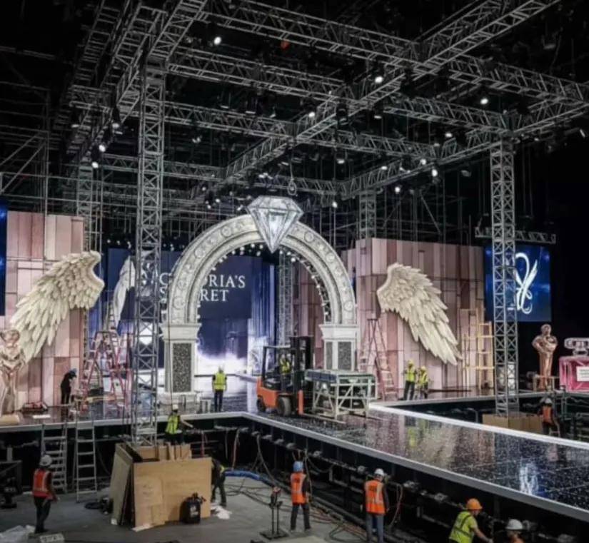 2025年的维密大秀开始在即,维密大秀的现场提前曝光。这次的维密大秀的舞台被打造成了一枚钻石戒指的造型,巨大的白色翅膀被摆放在戒指的两边,背景是淡粉色,这个舞台看着很梦幻浪漫。
